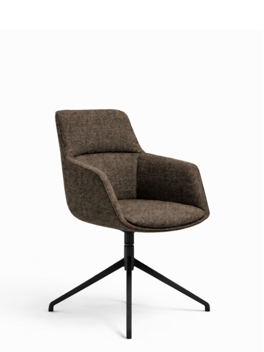 כיסא אורח מרופד ונוח במראה עכשווי, רגל מרכזית בשחור או לבן ובד לבחירה. קיים גם ככיסא ישיבות או ככיסא אורח 4 רגל