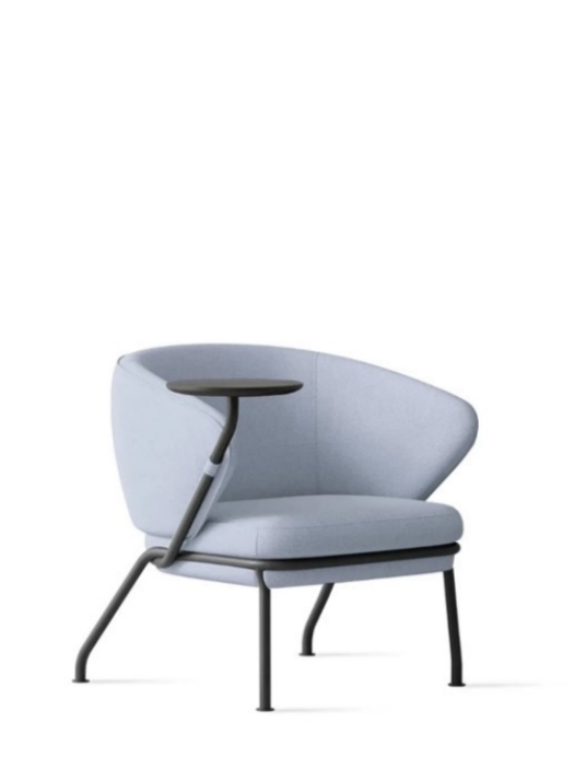 כורסא רכה קלילה עם מגש שולחן עגול, גוף מתכת ומושב וגב מרופדים