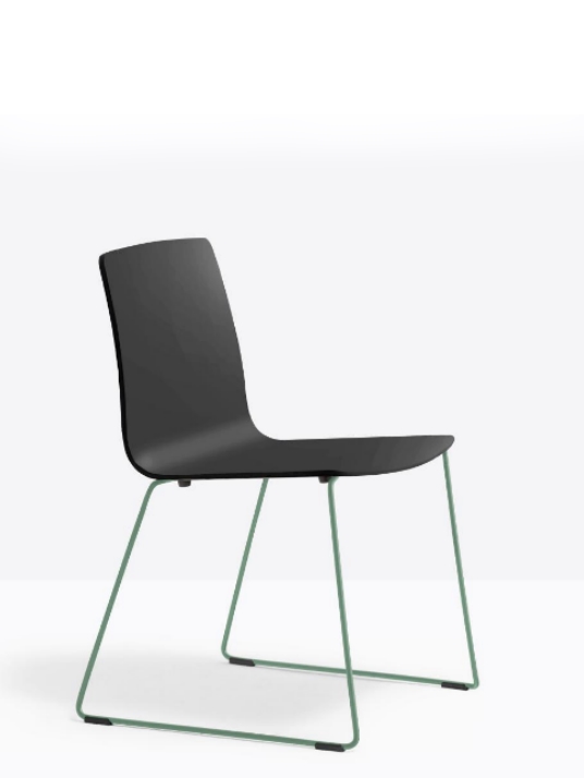 כיסא קפטריה מינימליסטי, מושב וגב פלסטיק עם רגלי מגלש מתכת