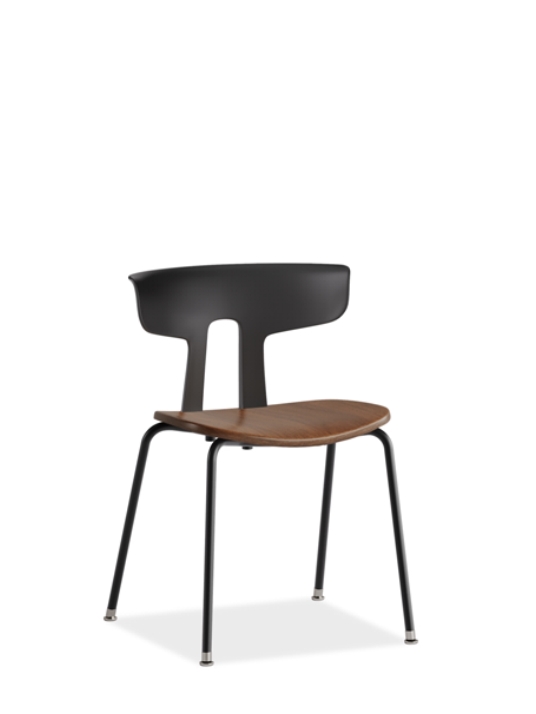 כיסא קפטריה במראה ייחודי עם מושב עץ וגב פלסטיק, 4 רגליים מתכת