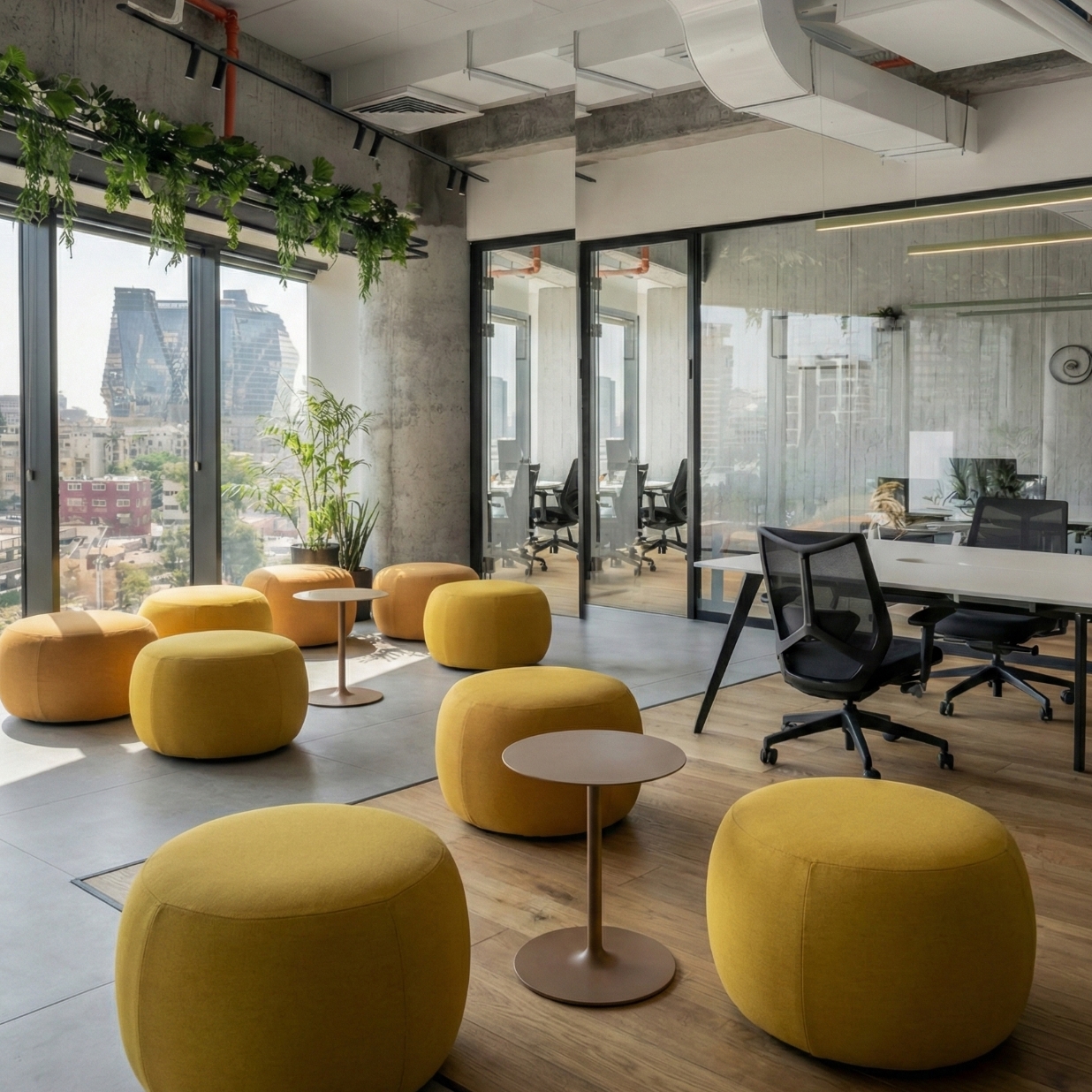 פוף עגול עם 3 תפרים חוצים המדמים צורת פרח