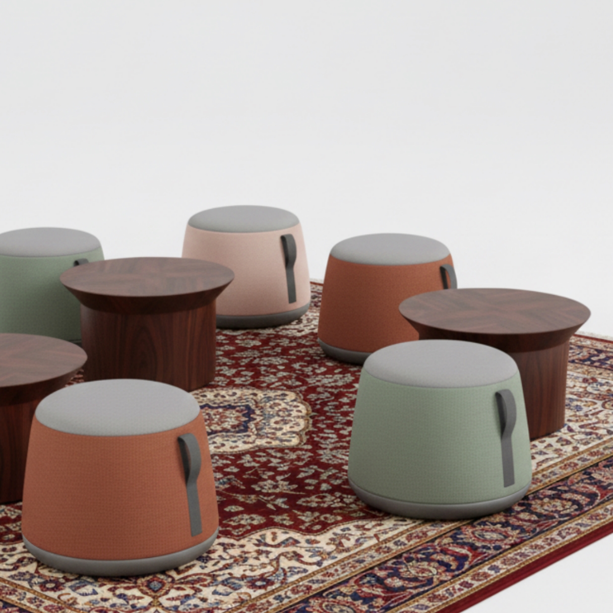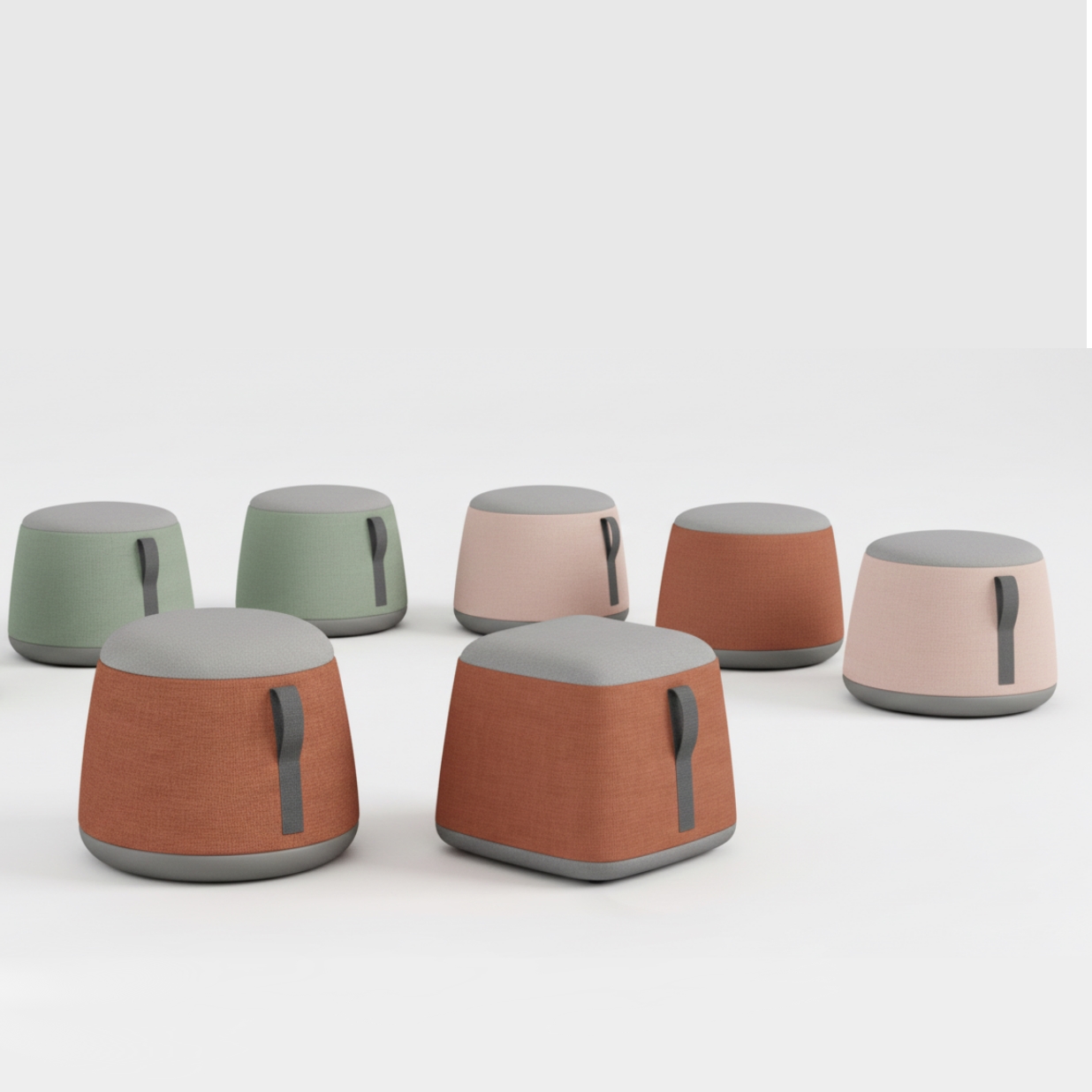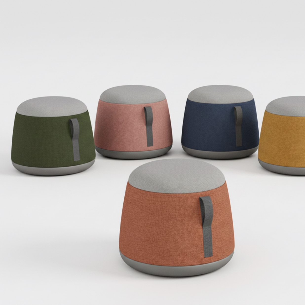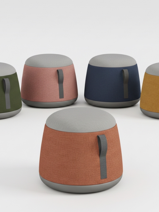 פוף ייחודי מעוגל עם שני גוונים וידית עור
