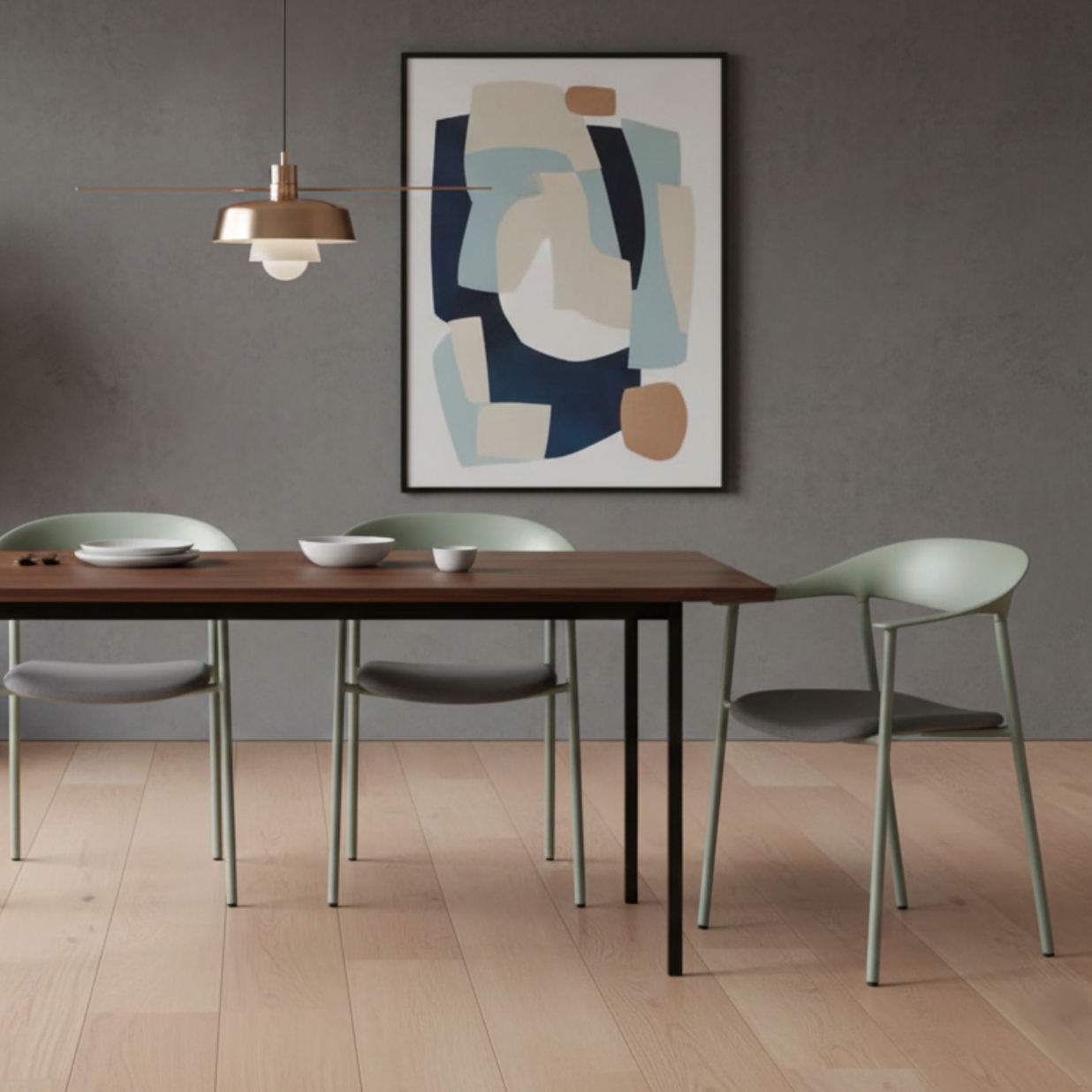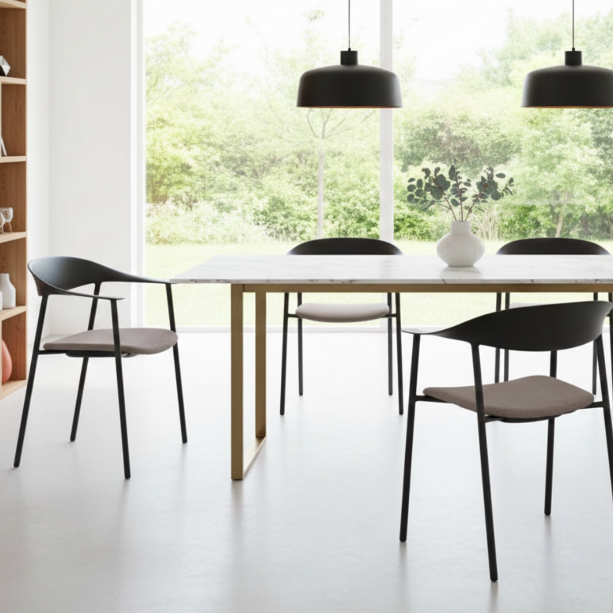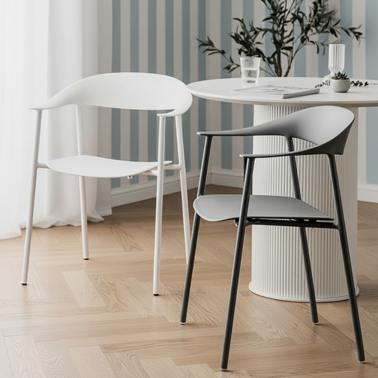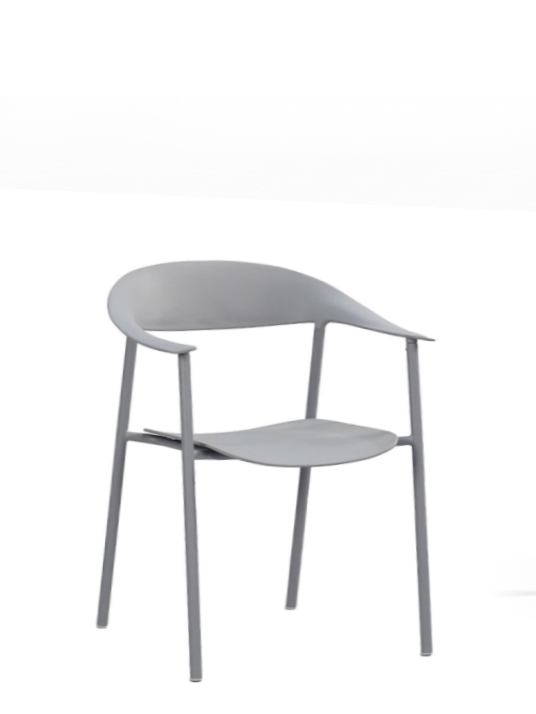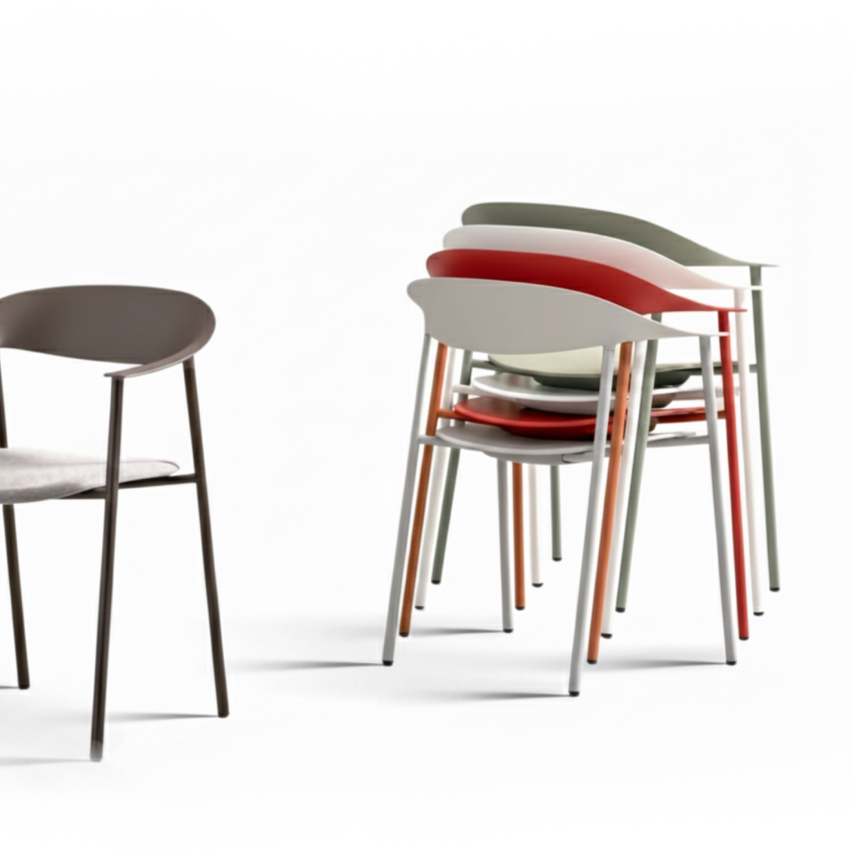 כיסא קפטריה אלגנטי ודקיק עם גב ומושב מפלסטיק ורגלי מתכת תואמות לגוון הפלסטיק, מגיע גם באופציה של מושב מרופד