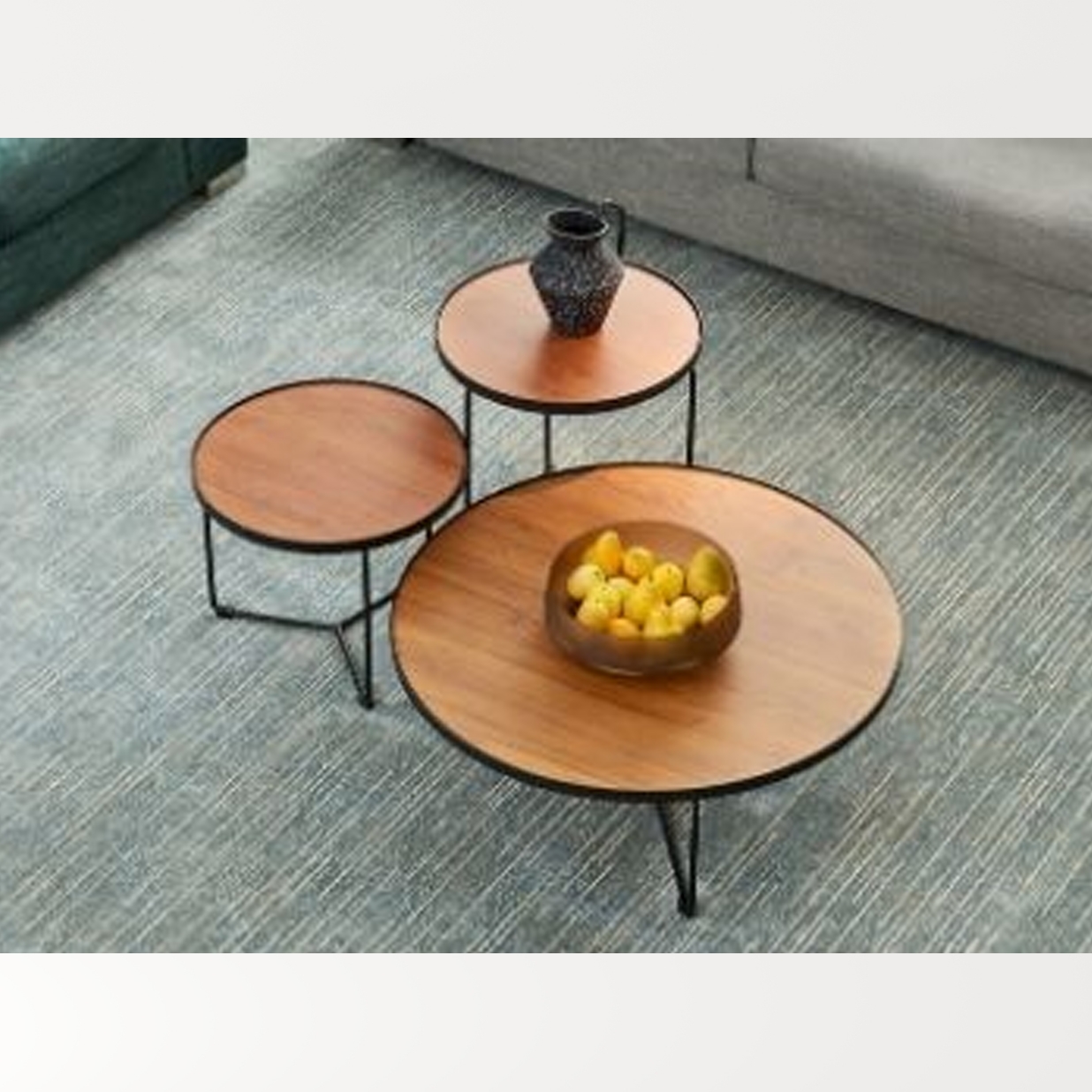 סט 2 שולחנות קפה עגולים (ניתן לקנות בנפרד) מסגרת מתכת שחורה ומשטח מלמין או פורניר